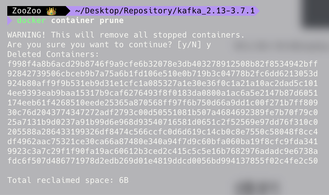 현재 실행 중인 컨테이너가 남아있다. 중지시키고 삭제한다.