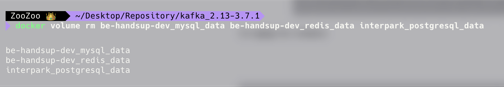 개별적으로 이름이 지정된 볼륨도 삭제해 준다.