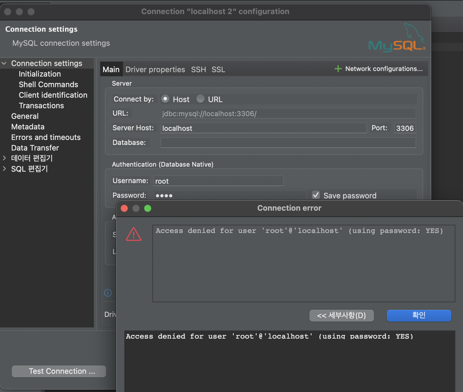 패스워드가 틀려서 Access denied가 된 것으로 보이는 상황이 발생했다.